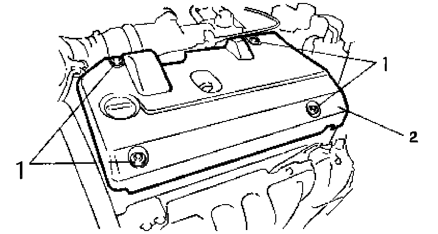 Remove engine cover bolts (1).