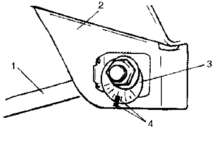 6) To facilitate toe adjustment after reinstallation, put match marks (4) on washer (3) and on suspension frame (2) (right and left).