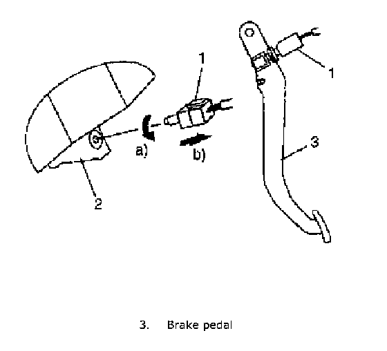 3. Remove stop lamp switch (1) from pedal bracket (2) as follows.