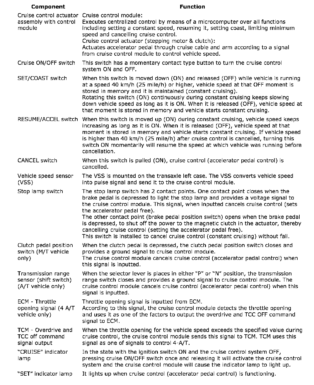 Components And Functions Of Cruise Control System: