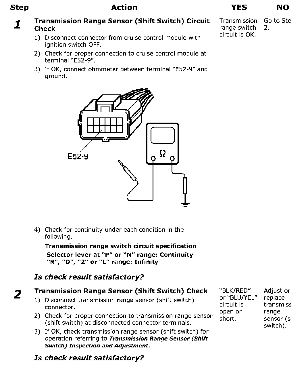 Transmission Range Sensor (Shift Switch) Circuit Check