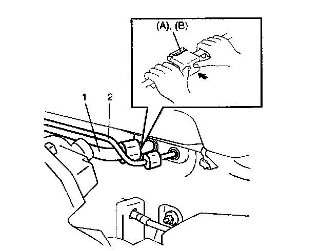 4. Disconnect suction hose (1) and condenser outlet hose (2) using special tools.