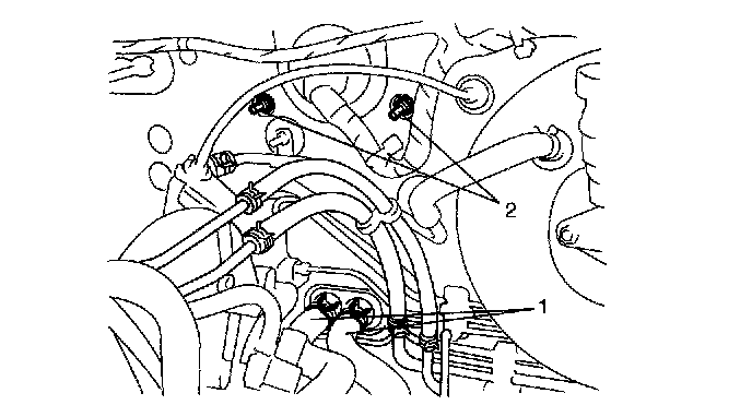 5. Drain engine coolant and disconnect heater hoses (1) from heater unit.