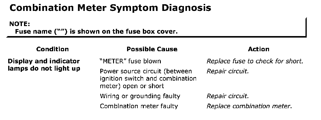 Combination Meter Symptom Diagnosis: