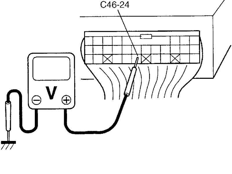6) Turn ignition switch ON and check voltage at "C46-24" terminal.