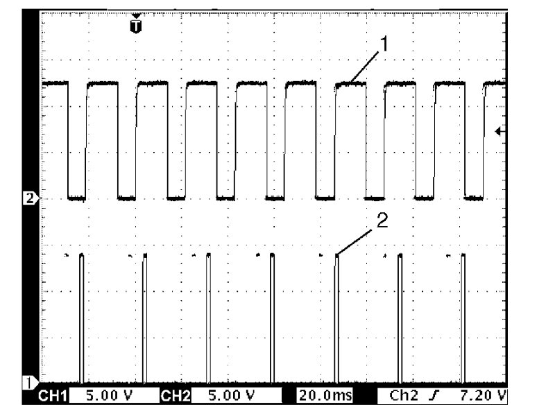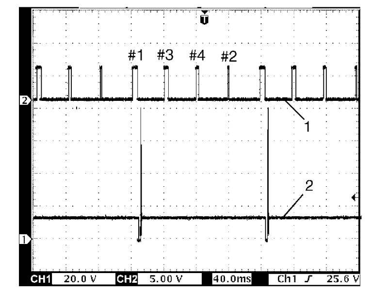 Ignition pulse (Engine revolution) signal (2) at engine idling