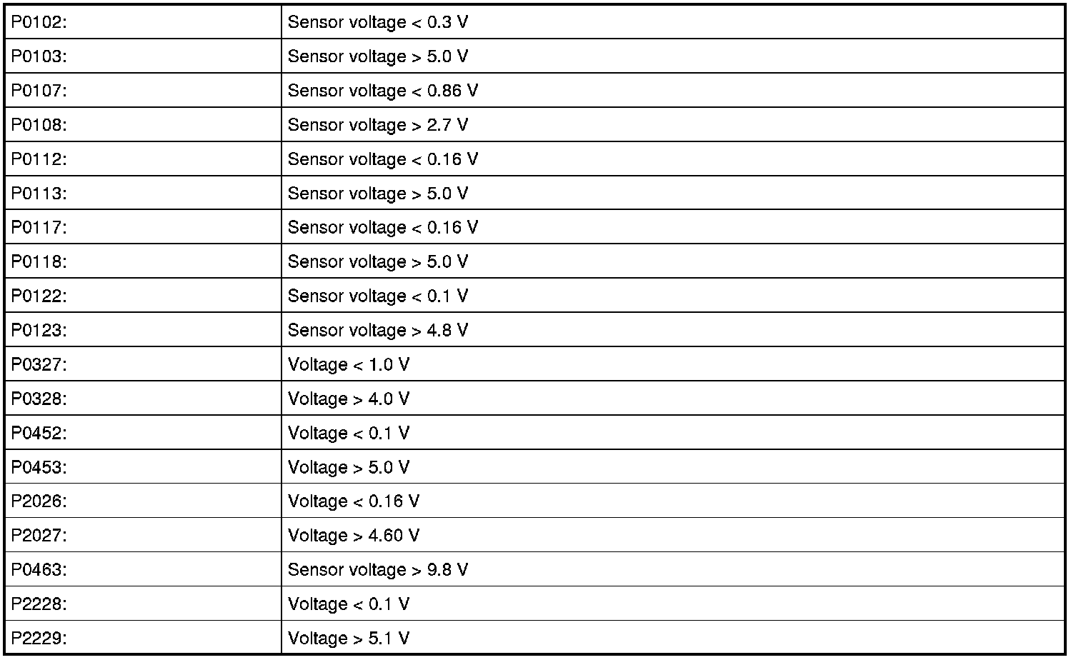 P2227, P2228, P2229
