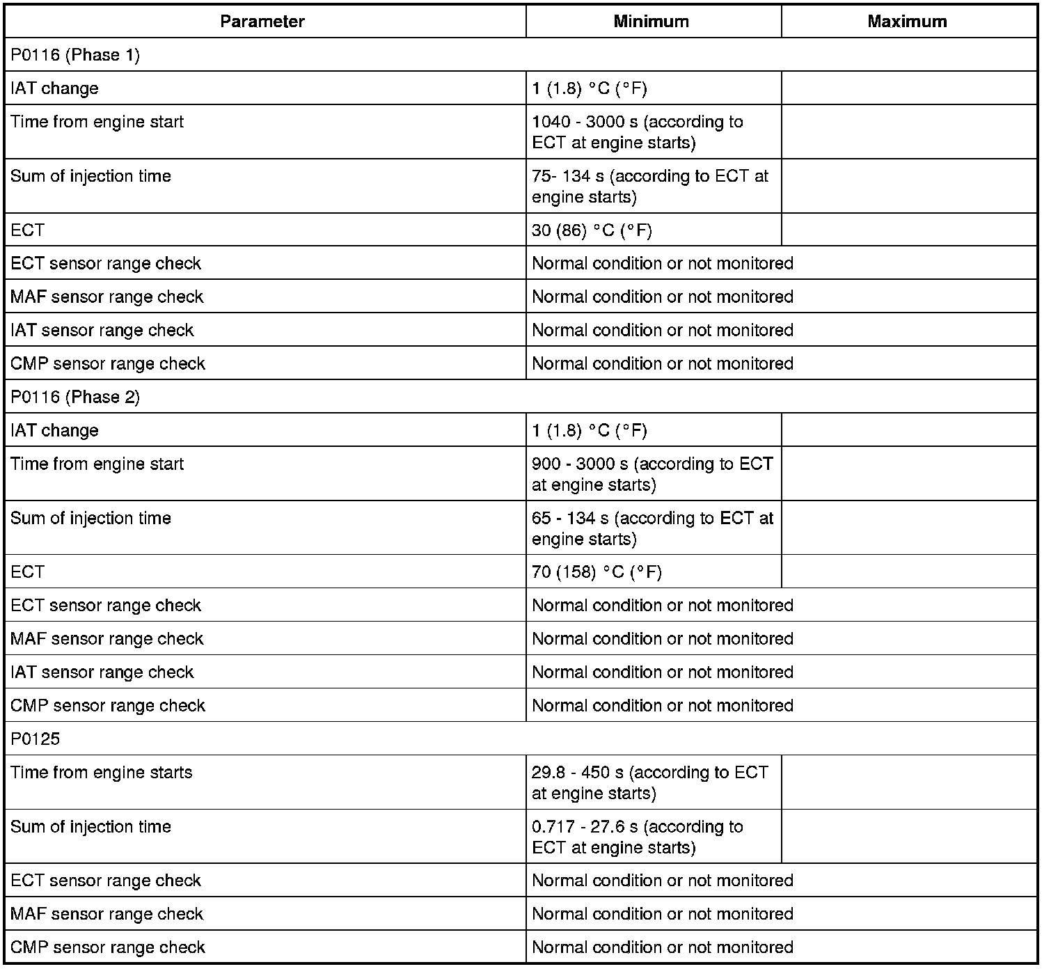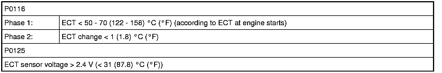 Refer to P0116 DTC P0116: Engine Coolant Temp. (ECT) Circuit Range / Performance Problem.