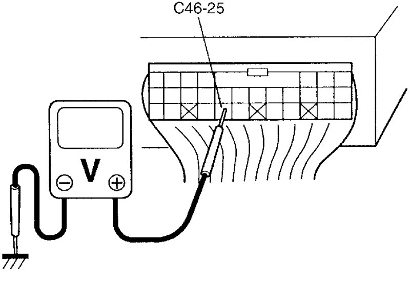 3) Using voltmeter, check voltage at "C46-25" terminal under the following each condition.