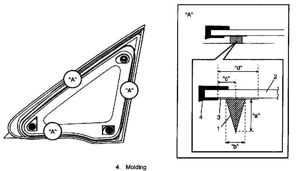 Front Pillar Window Removal and InstallationRefer to "Windshield Removal and Installation:" as removal and installation procedures are basically the same.