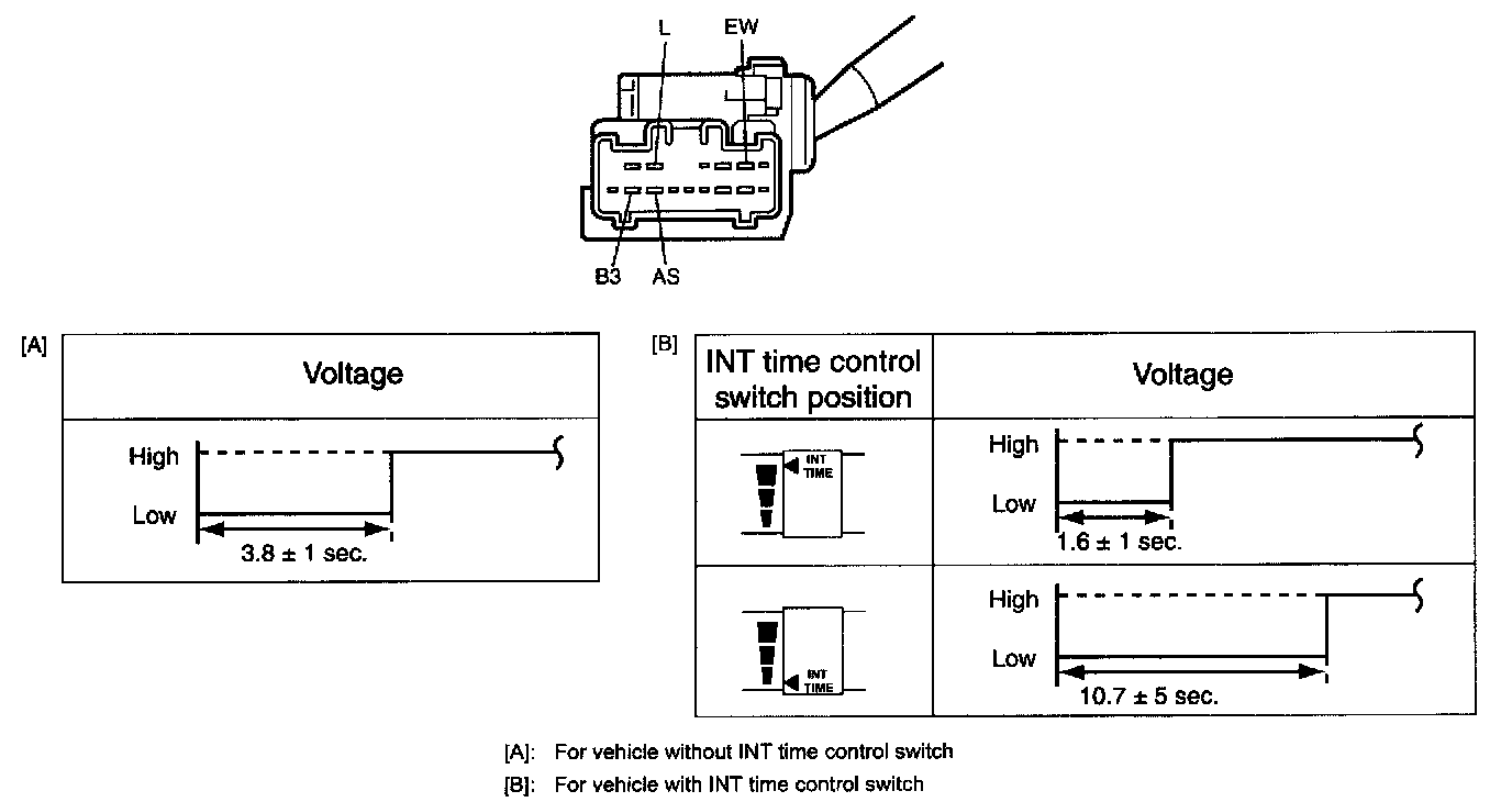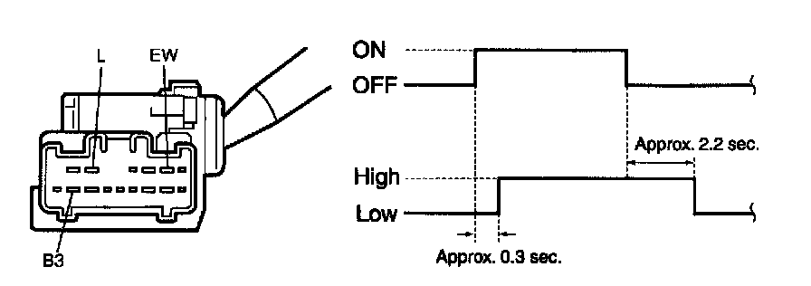4. When front washer switch is ON, check that voltage changes as shown in figure.