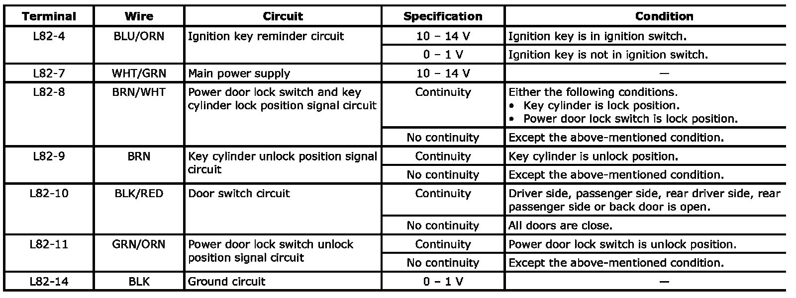 If check result is OK, replace door lock controller. If check result is not as specified, repair circuit.