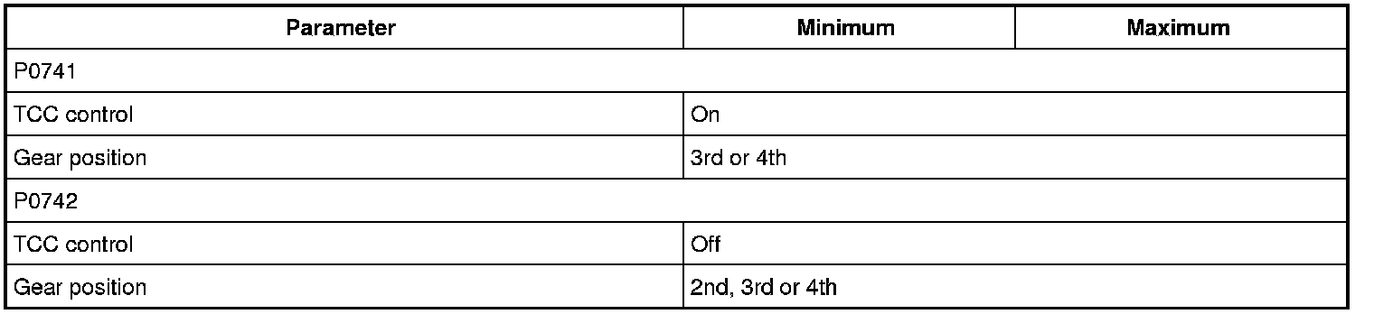 TCM (PCM) monitors operation (engagement condition) of TCC in response to ON/OFF command to the TCC solenoid using input and output speed sensor signals.