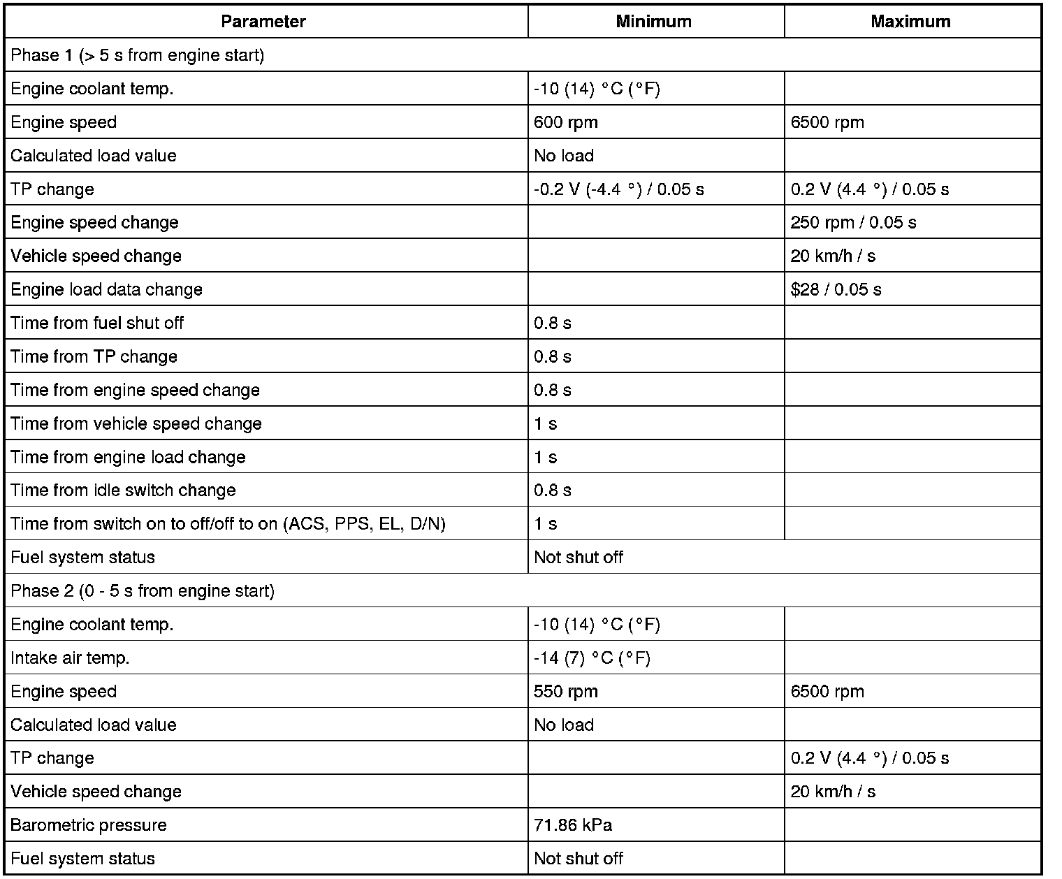 ECM (PCM) measures the angle speed of the crankshaft based on the pulse signal from the CKP sensor and CMP sensor for each cylinder. If it detects a large change in the angle speed of the crankshaft, it concludes occurrence of a misfire. When the number of misfire is counted by the ECM (PCM) beyond the DTC detecting condition, it determines the cylinder where the misfire occurred and outputs it as DTC.