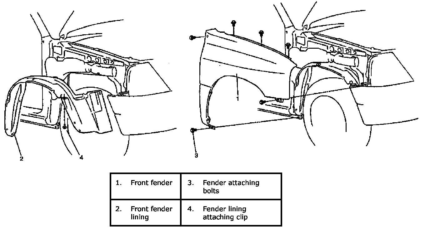 NOTE: If paint on fender bolt is peeled off, be sure to apply paint again.