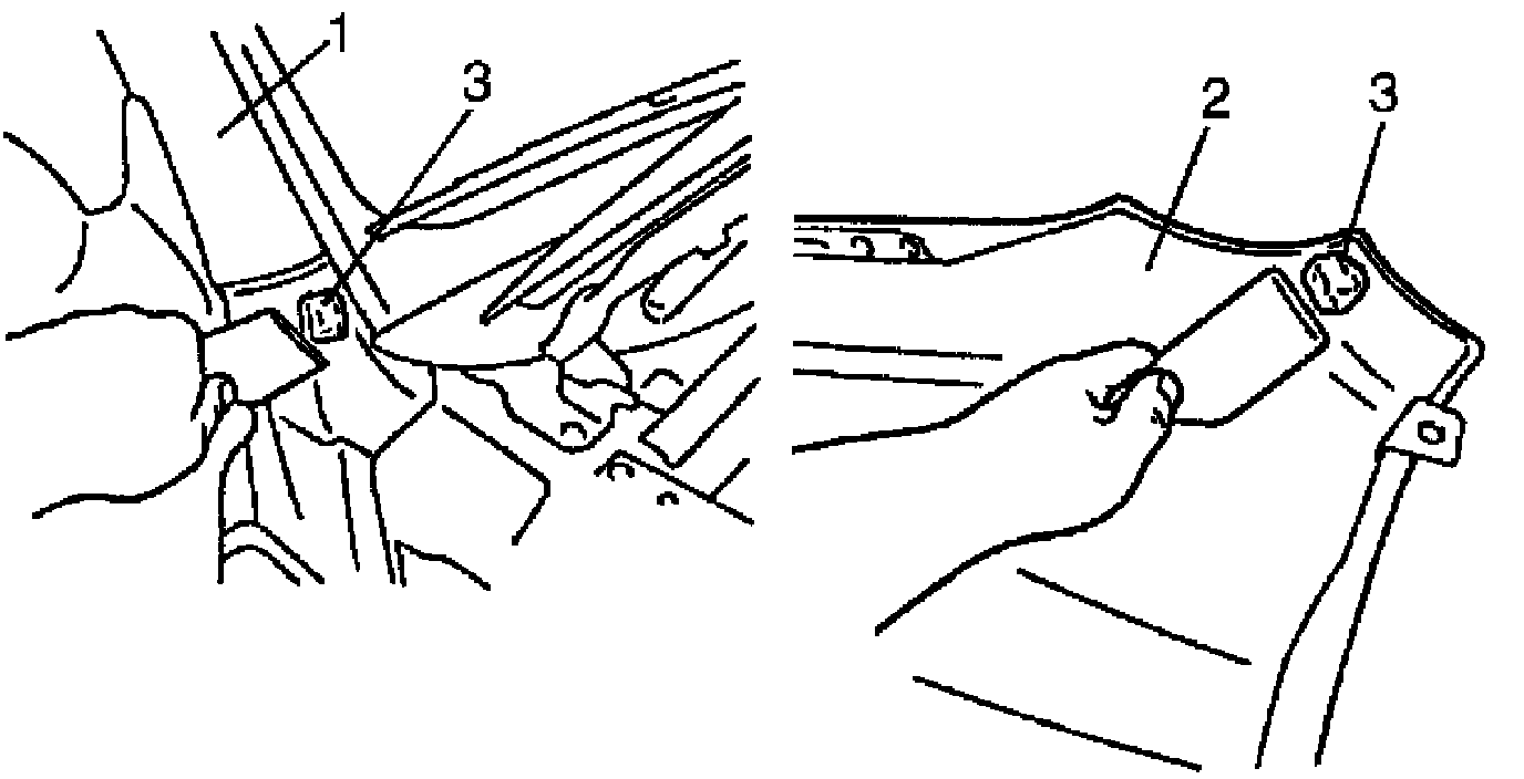 1. Remove pad (3) from side body (1) and (or) fender (2), using care not to damage painted surface.