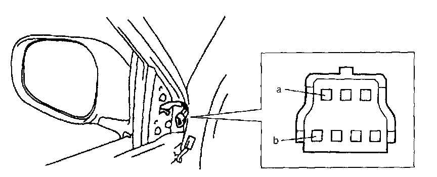 Check for continuity between terminals "a" and "b". If not continuity, replace outside mirror.