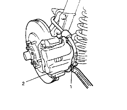 2. Remove caliper assembly (2) by loosening carrier bolts (1) (2 pcs.).