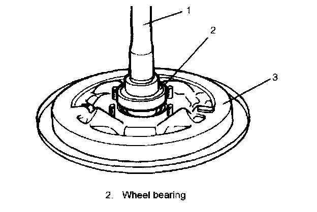 8. Remove brake back plate (3) from rear axle shaft (1).