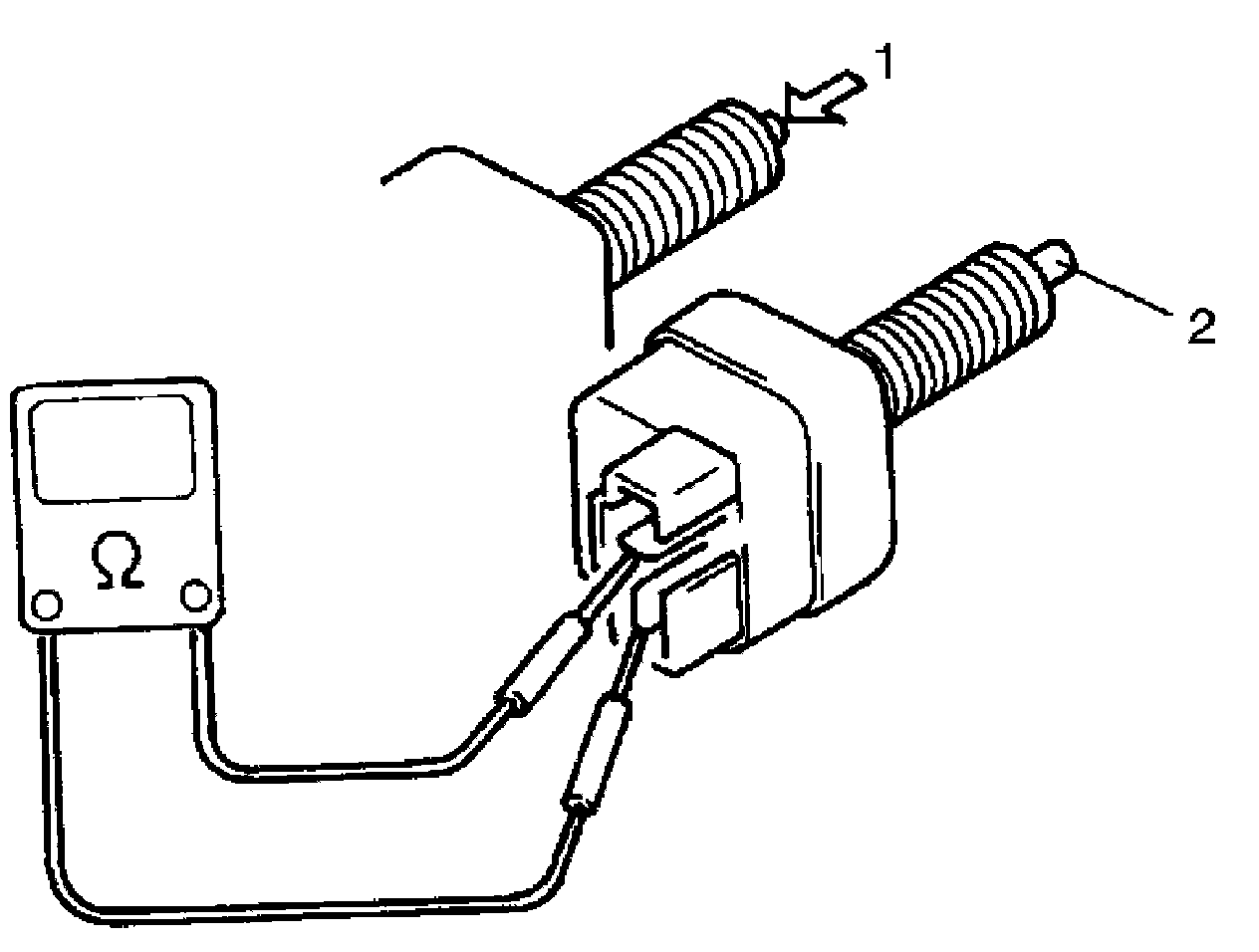 With clutch pedal (1) released, adjust switch (2) position so that clearance between end of thread and clutch pedal bracket is within specification.