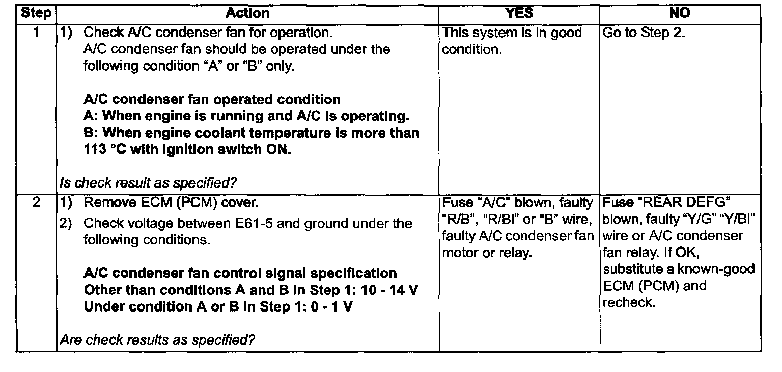 A/C Condenser Fan Motor Relay Control System Inspection