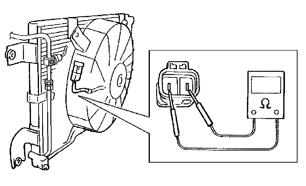A/C Condenser Fan Assembly Inspection- Check continuity between terminal to terminal as shown in figure.