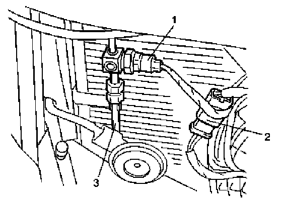 4. Disconnect compressor delivery hose (1) from condenser inlet fittings.