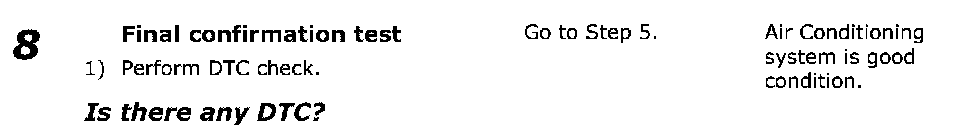 Confirm that the problem symptom has gone and the air conditioning system is free from any abnormal conditions. If what has been repaired is related to the malfunction DTC, check DTC once and confirm that no DTC is indicated.