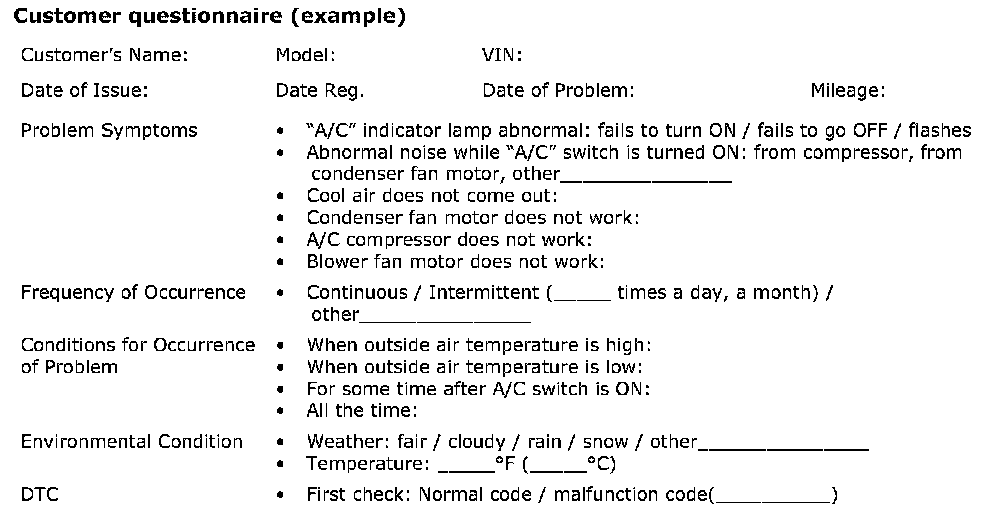 For this purpose, use of such a questionnaire form as shown in the figure will facilitate collecting information to the point required for proper analysis and diagnosis.