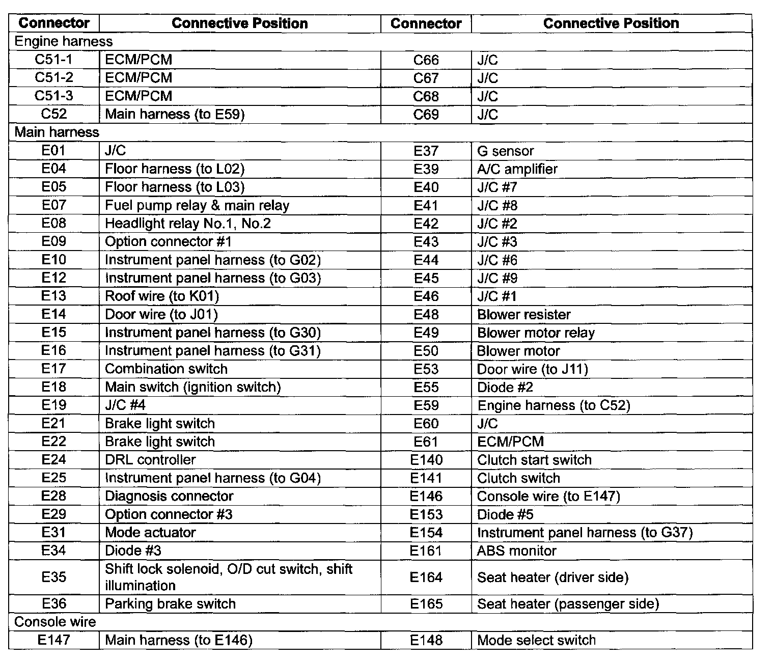 C: Engine Harness / E: Main Harness And Console Wire Part 2: