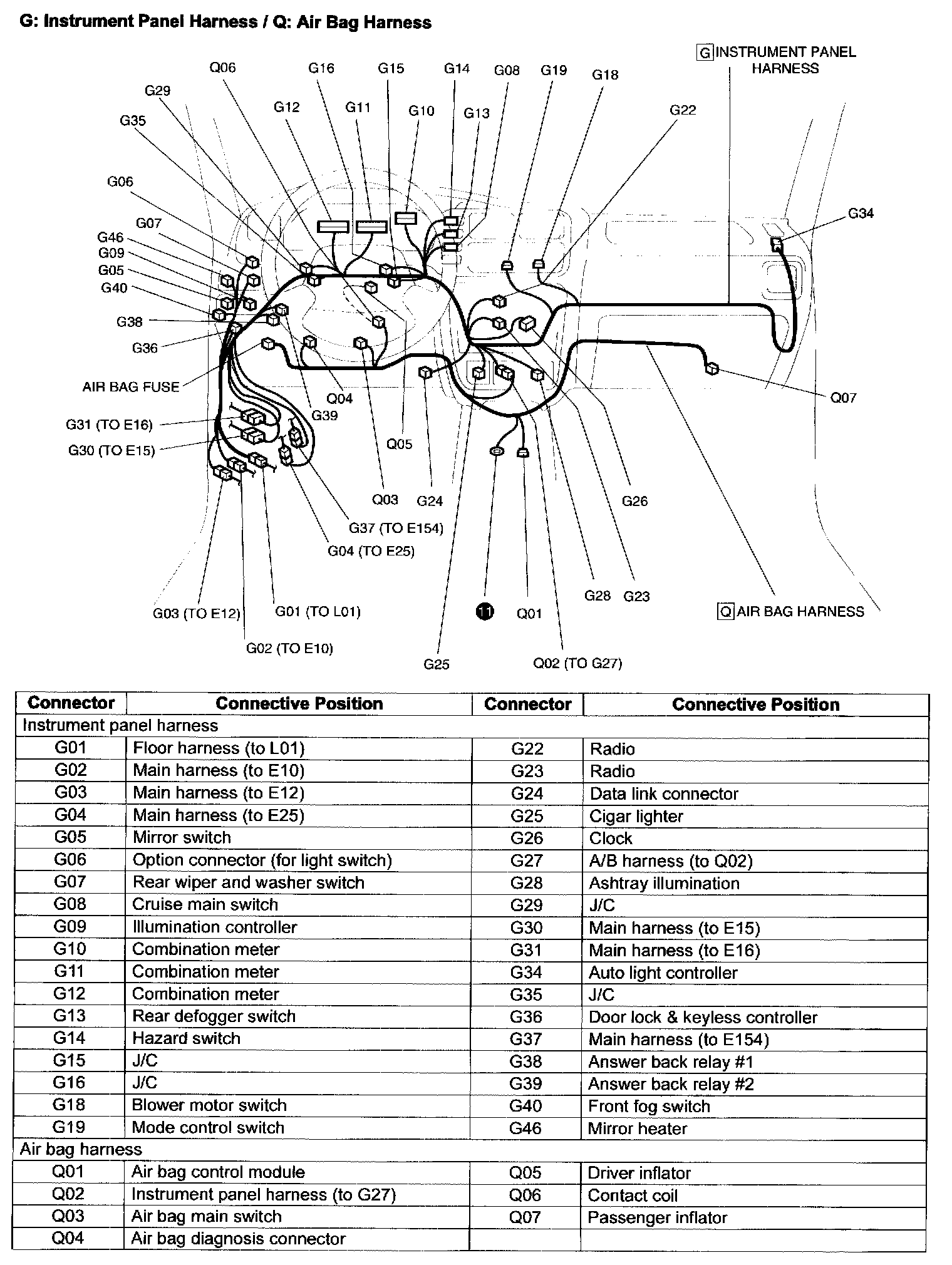 G: Instrument Panel Harness / Q: Air Bag Harness: