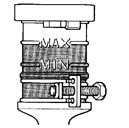 InspectionFluid level should be always between MIN and MAX lines on reservoir. If fluid decreases quickly, check for leakage, repair leaky point, if any, and add fluid up to MAX level.