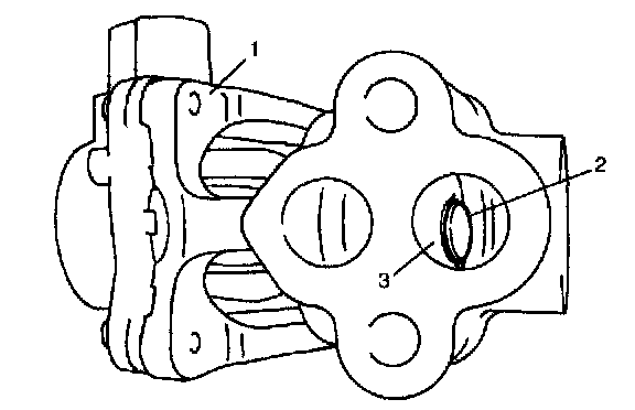 3. Inspect valve (2), valve seat (3) and rod for fault, cracks, bend or other damage. If found faulty, replace EGR valve assembly (1).