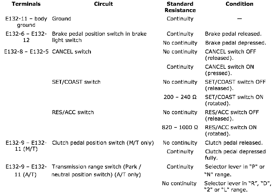 Cruise Control Module and Its Circuit Inspection
