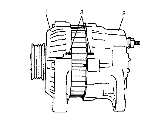 1. For easier reinstallation, provide match marks (3) on both front housing (1) and rear housing (2) as shown in figure before separating them.
