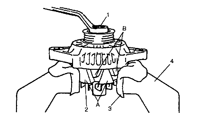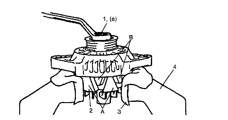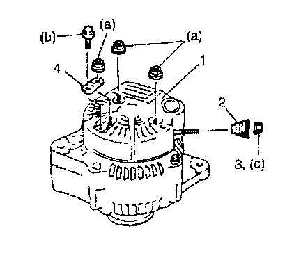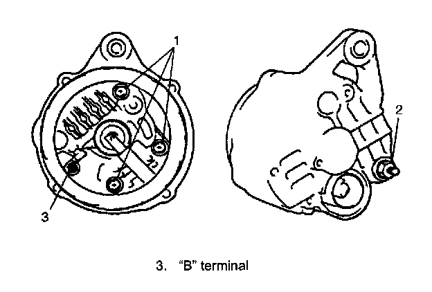 1. Remove "B" terminal inner nut (3) and insulator (2).
