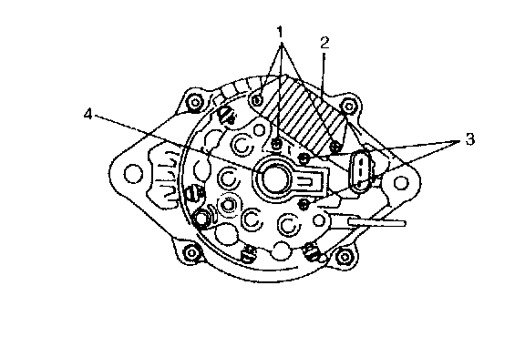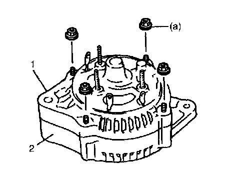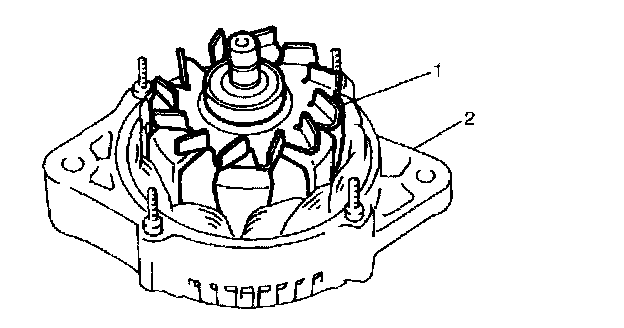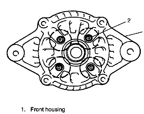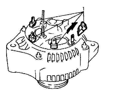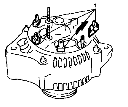 9. Unsolder stator leads (1) and remove stator from rear housing and regulator assembly.