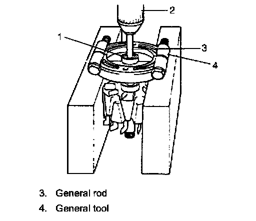 - When using vise (4), put clean cloth (3) between rotor (2) and vise (4) so as not to cause damage to rotor (2).