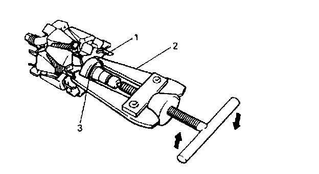4. Loosen pulley nut (1) by using vise (4) and take off pulley.