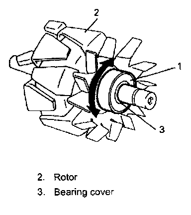 CAUTION: Do not hit shaft at slip ring side, when separating rotor and rear end frame.