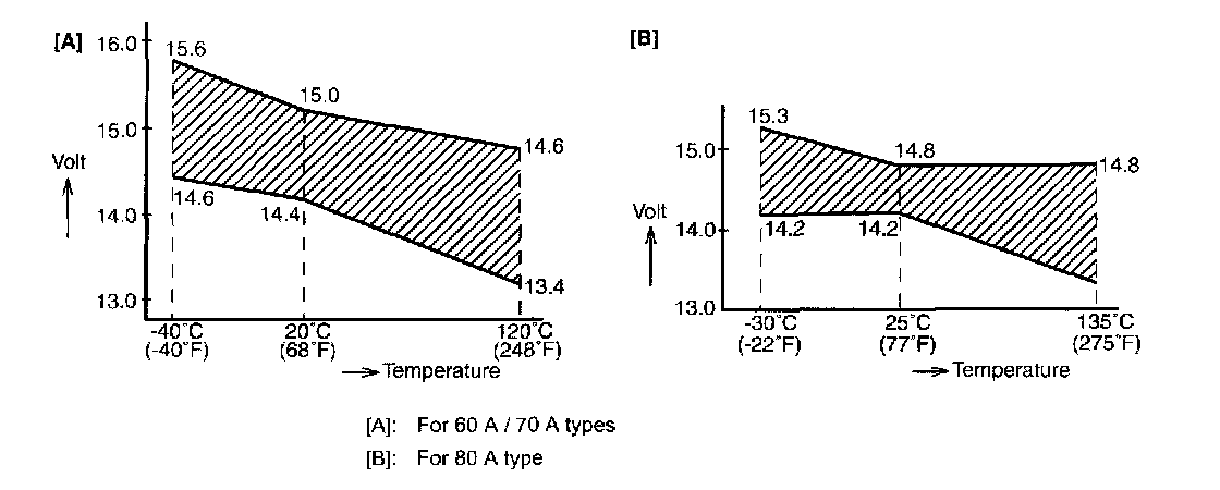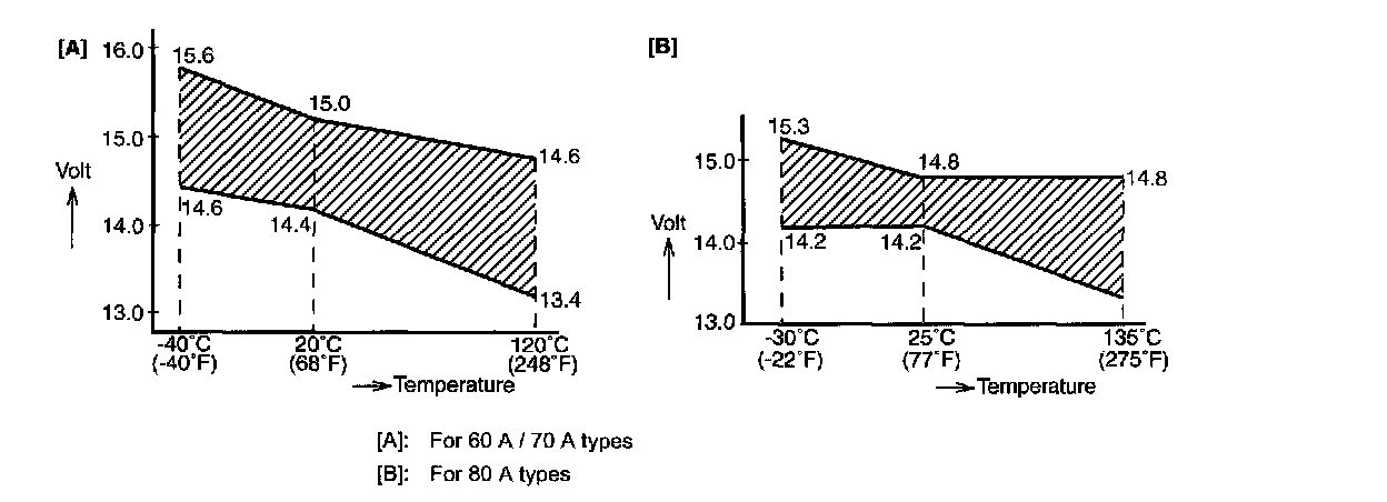14.4 - 15.0 V (for 60 A / 70 A types)