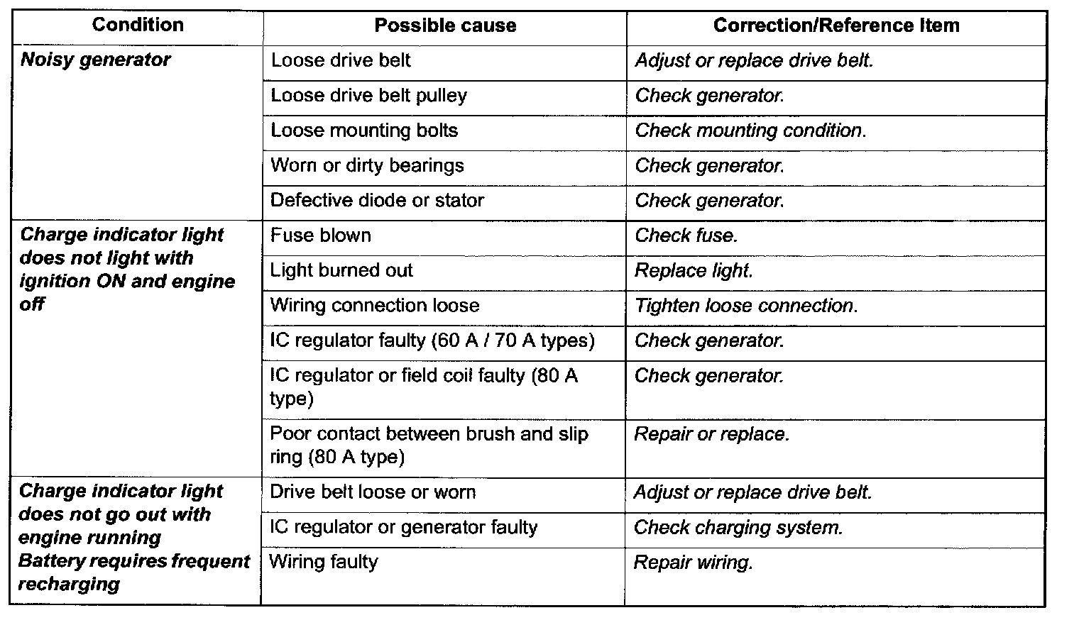 Generator Symptom DiagnosisA charging circuit wiring diagram for generator connection is shown in "Generator Description: ". To avoid damage, always follow these precautions: