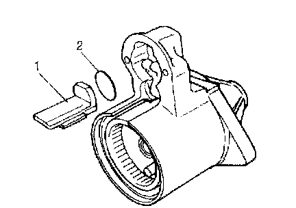 1. Remove protector (2) (if equipped) and magnetic switch (1).