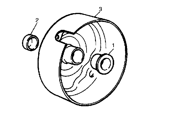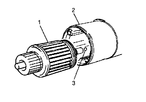 9. Remove armature (1) from yoke (2) and then ball (3) from the end of armature shaft.
