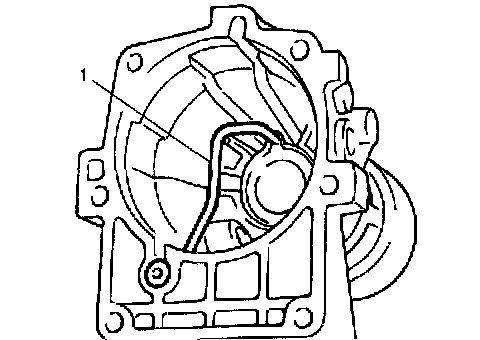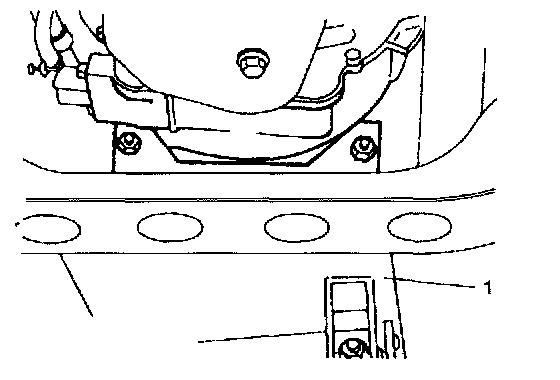 6) Support transmission with a transmission jack (1). Try not to apply jack against oil pan as much as possible.