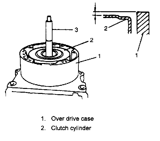 11) Check dimensions of overdrive (O/D) case surface and clutch cylinder surface for reassembly.