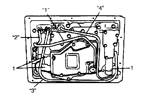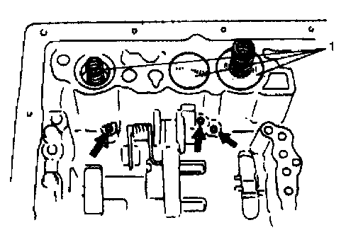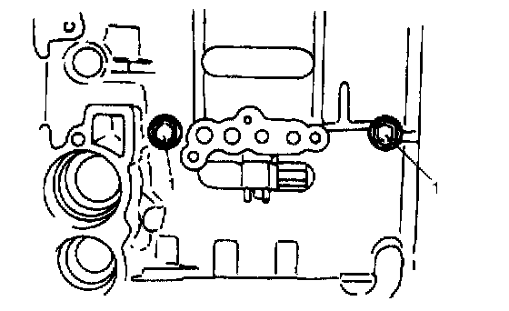 21) Remove accumulator pistons (1) by blowing air into holes as shown in the figure.