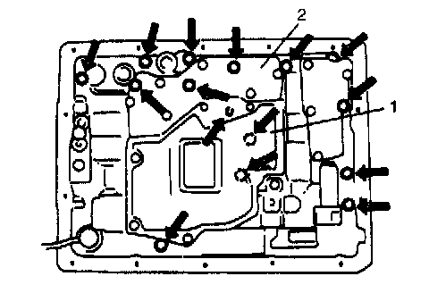 18) Remove valve body (2) mounting bolts as shown in the figure.