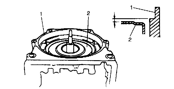 23) Check top surface level of forward clutch (2) against case (1) for reassembly.