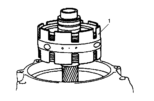 29) Remove retaining ring (1), planetary gear assembly and leaf spring.